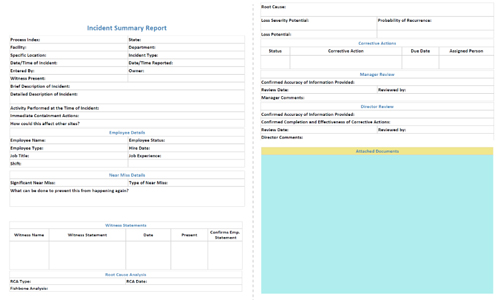 More in-depth reporting forms could also allow employees and/or managers receiving the forms to score the incident on one of several bases conveying urgency, such as the severity of the potential outcome (minor injury to fatality) or the frequency of occurrence (first-time versus repeating).