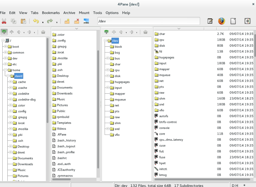 4Pane is a versatile, multi-pane file manager designed for Linux that emphasizes functionality while avoiding unnecessary bloat, prioritizing speed over visual effects. Beyond the basic features expected from a file manager, it provides advanced options such as multiple undo and redo capabilities for various operations, including deletions, archive management with a unique 'virtual browsing' feature, bulk renaming and duplication of files, a built-in terminal emulator, and customizable user-defined tools. The interface is characterized by a two-pane layout, with the left side displaying a directory tree view and the right side presenting a detailed list of both files and folders, though this configuration can be tailored to individual preferences. Built and rigorously tested across all major Linux distributions, it supports both recent and older versions, making it highly adaptable for a wide range of users. While it exhibits a gtk-style aesthetic, it remains independent of any specific desktop environment, ensuring broad compatibility. This flexibility allows users to seamlessly integrate 4Pane into their workflow regardless of their system setup.