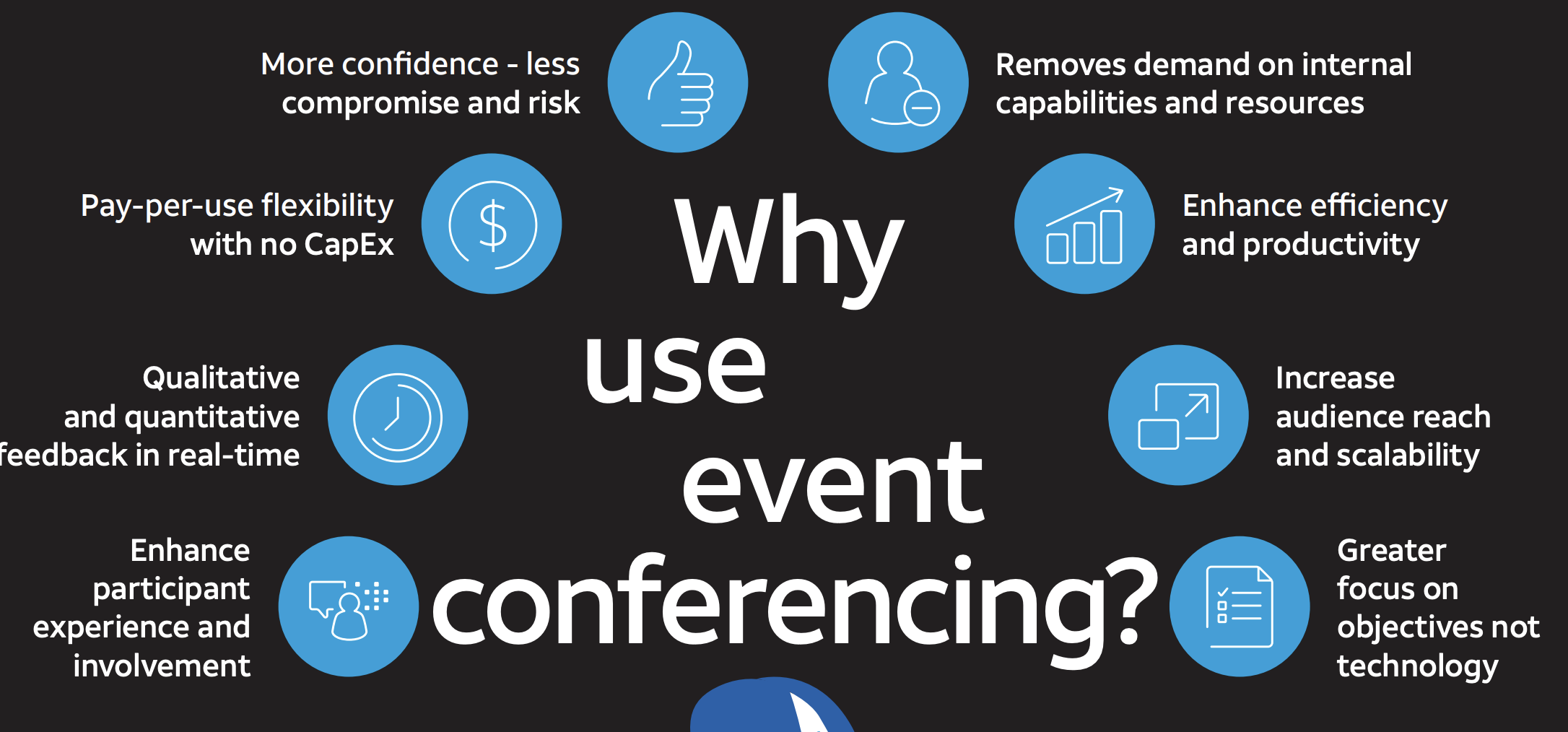Experience flexible pay-as-you-go global audio, web conferencing, and webcasting services tailored for intricate, large-scale, dynamic, or high-profile custom events, complete with options for premium white glove service. You can concentrate on your event while we manage all the intricate conference details, allowing you to select the features that best fit each occasion. With a participant capacity ranging from 2 to 40,000, you can utilize our conferencing services on an as-needed basis and only incur costs for what you actually use. Our rapid conference setup ensures you can start communicating more quickly than ever. Whether you're reaching out to a handful or thousands of attendees, our services are available around the clock, seven days a week. Our team of professional specialists is dedicated to ensuring your event flows seamlessly, whether you prefer guidance, a DIY approach, or a fully produced and moderated experience. They are committed to delivering outstanding events from the pre-event phase all the way through to post-production, offering features like moderation, Q&A, polling, and conference screening. Leveraging AT&T’s event conferencing technology and live resources can significantly enhance the impact of your event, ensuring that you achieve your communication goals effectively. With our tailored approach, you can truly make your event stand out and resonate with your audience.