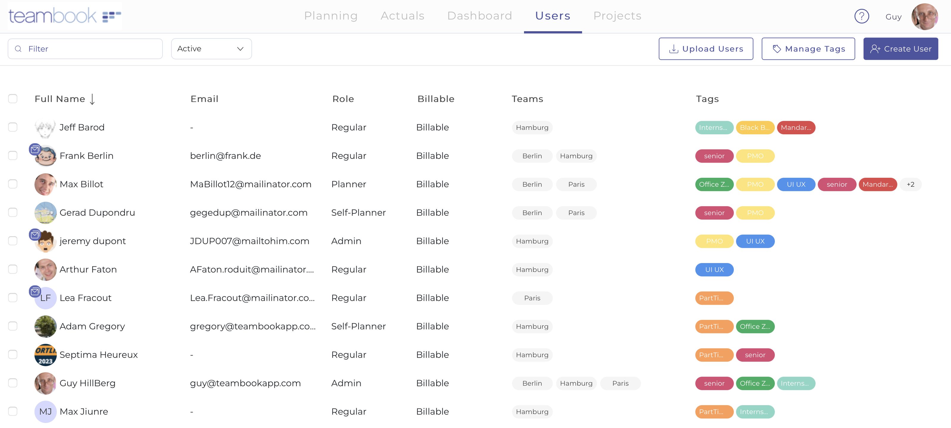 Teambook's Planning module gives you an instant, real-time overview of your teams' occupancy, showing you “who's doing what and when”, as well as “who's available or not”. On this basis, you can allocate your resources to future projects by simply clicking and dropping.