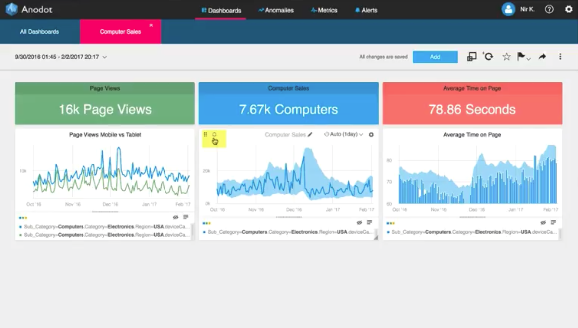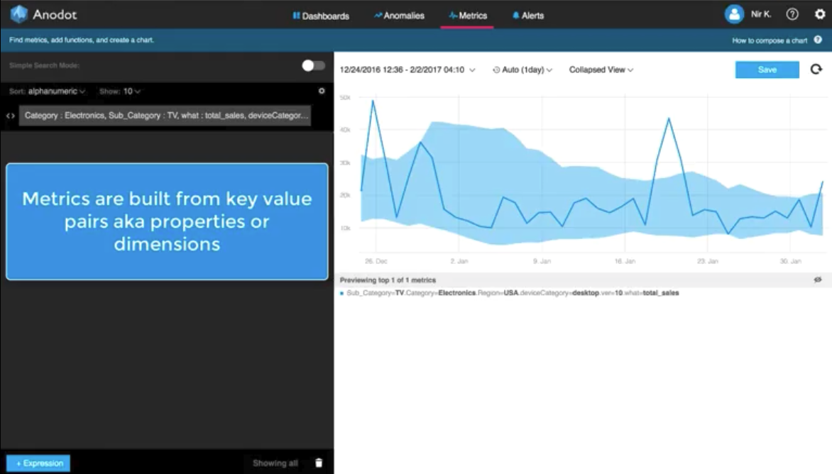 Anodot uses AI to deliver autonomous analytics at enterprise scale across all data types and in real-time. We provide business analysts with the ability to control their business, without the limitations of traditional Business Intelligence. Our self-service AI platform runs continuously to eliminate blind spots and alert incidents, and investigate root cause.