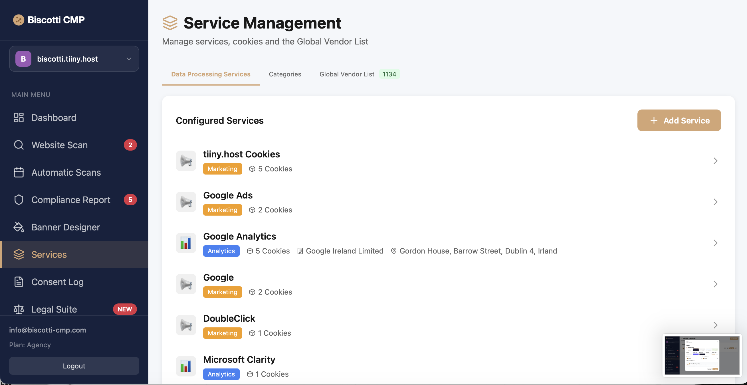 Biscotti CMP is an advanced, lightning-fast consent management platform developed in Germany, designed to streamline GDPR and worldwide privacy compliance in a simple, equitable, and developer-friendly manner. Its efficient script loads immediately without causing layout shifts, and it operates on a transparent, session-based pricing model that has no hidden charges. This platform is compatible with over 30 privacy frameworks, such as GDPR, CCPA, LGPD, POPIA, PDPA, PIPEDA, APPI, and PIPL. With automatic geo-detection, it applies the appropriate regional regulations, and Biscotti is completely aligned with Google Consent Mode v2, TCF 2.3, and forthcoming regulations like the EU AI Act 2026. The Pre-Boot Shield feature effectively blocks all tracking technologies until consent is granted. Additionally, Biscotti provides multilingual support and customizable themes, alongside seamless integrations, including a one-click setup for WordPress. With data hosted in the EU and developer-friendly documentation, it stands out as a swift and future-ready solution for ensuring global privacy compliance, making it an ideal choice for businesses looking to navigate the complexities of data protection laws.