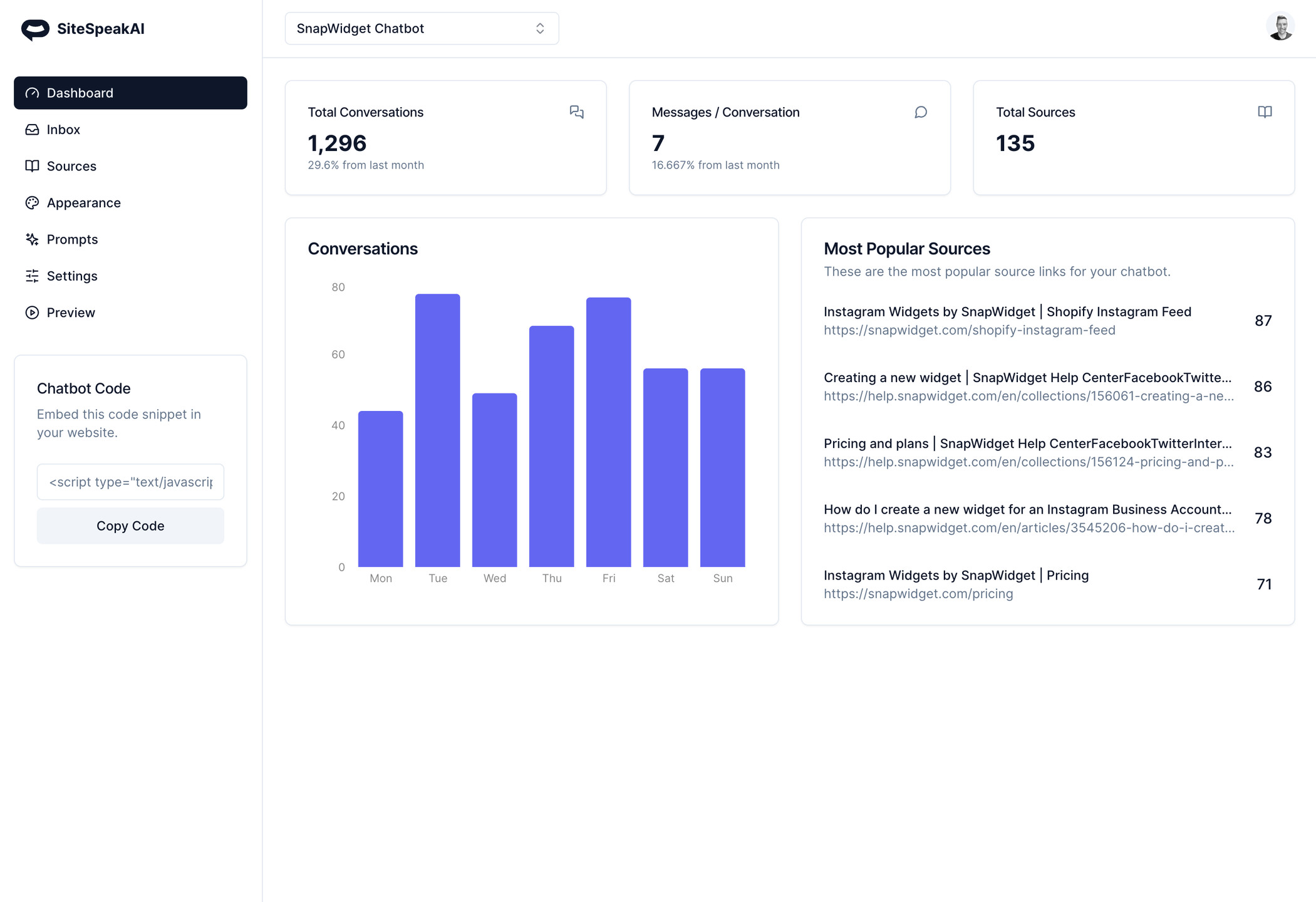 SiteSpeakAI leverages the information from your website to develop a tailored chatbot that can provide real-time answers about your offerings around the clock. You have the ability to both train and update your chatbot as your website's content evolves, ensuring it remains current with the most accurate details. Personalize your chatbot’s appearance to align with your brand’s aesthetic, and even adjust its responses to resonate with your brand's unique voice. Implementing your ChatGPT-enhanced chatbot on your site is as simple as inserting a single line of code, eliminating the need for additional plugins or extensions. Furthermore, SiteSpeakAI equips you with comprehensive analytics to monitor how visitors engage with your chatbot, enabling you to leverage this information for enhancing your lead conversion rates. This feedback loop allows for continuous improvement, ensuring that your chatbot not only meets but exceeds customer expectations.