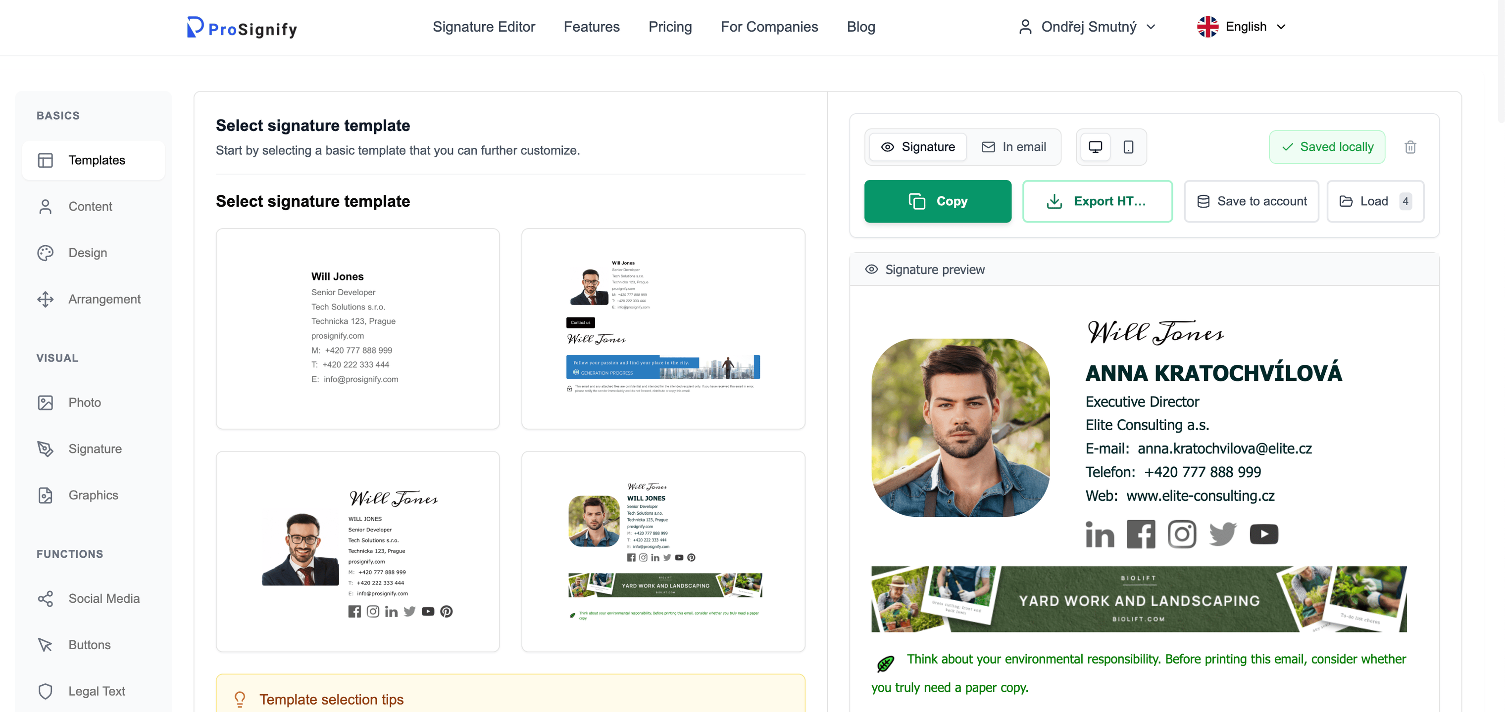 ProSignify is a versatile online platform that enables users to design professional email signatures with ease, making personal branding and business communication more polished. Its intuitive drag-and-drop signature editor requires no technical knowledge, so anyone can quickly adjust fonts, colors, layouts, and upload images such as photos, logos, or banners. The tool offers a wide selection of beautifully designed, mobile-responsive templates that work across all major email clients, including Gmail, Outlook, and Apple Mail. With a live preview feature, users see changes instantly, ensuring their signature looks perfect before exporting. The editor automatically saves progress in the browser, allowing effortless editing later. Exporting signatures is streamlined via one-click copy or HTML generation for direct insertion into emails. ProSignify also supports users with a comprehensive FAQ and responsive customer service. It’s a perfect solution for freelancers, professionals, and companies looking to enhance their email communication.