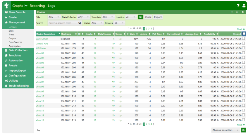 Cacti offers a powerful and flexible framework for operational monitoring and fault management, catering to users globally. It serves as a comprehensive solution for network graphing, leveraging RRDTool's impressive data storage and graphing capabilities. The platform features a distributed and resilient data collection system, along with sophisticated automation tools for managing devices, graphs, and trees using templates. In addition to its various data acquisition methods, Cacti supports extensibility through plugins, features role-based management for users, groups, and domains, and includes a theming engine with multilingual support right from the start. All of these functionalities are integrated into a user-friendly interface that is suitable for everything from small LAN setups to intricate networks comprising thousands of devices. To operate Cacti, users need MySQL, PHP, RRDTool, net-snmp, and a compatible web server like Apache or IIS. Central to Cacti's architecture and database management is the concept of devices and device templates, which play a crucial role in its operation. Moreover, the system's adaptability makes it a preferred choice for organizations seeking to optimize their network monitoring processes.