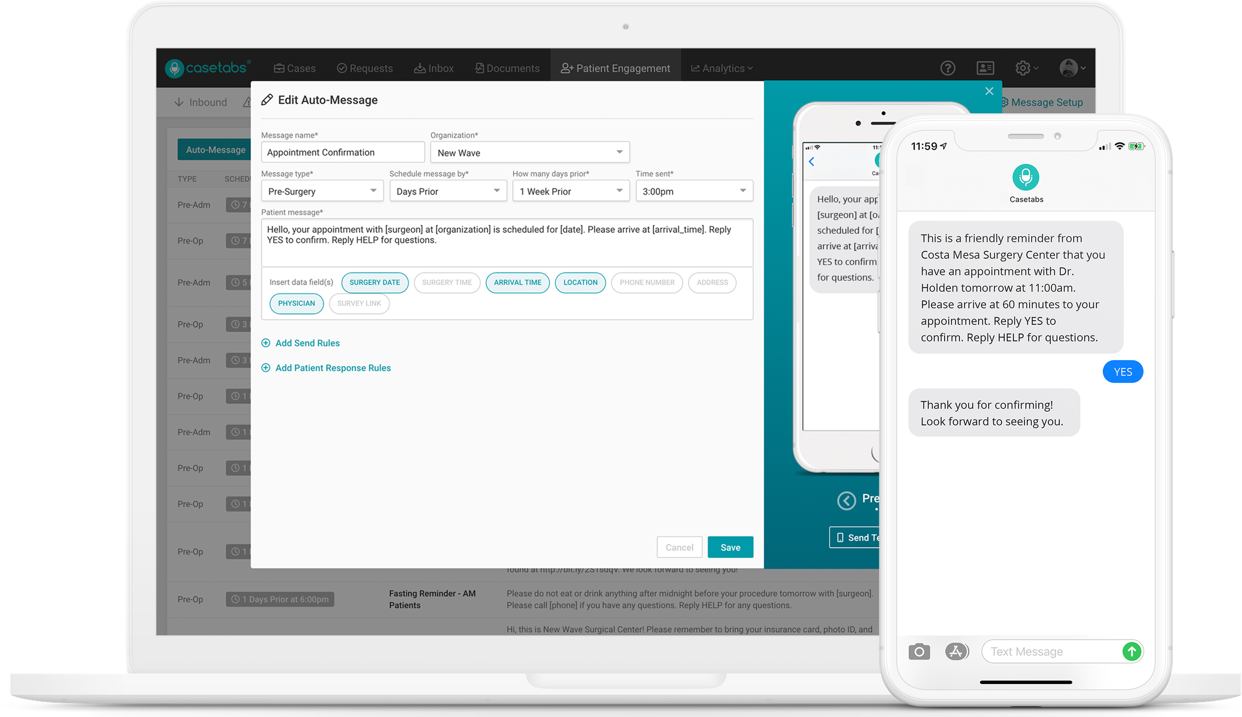 Casetabs is an innovative cloud-based application designed for surgical coordination, providing immediate updates on cases to facility personnel, doctors, external offices, and vendor representatives. With this app, every member of the surgical team automatically receives timely notifications whenever a surgery is coordinated. Casetabs generates alerts and informs the appropriate individuals with all the necessary details to ensure seamless communication. Say goodbye to traditional paging systems; Casetabs allows you to access crucial information instantly, ensuring that you are always informed in order to better care for your patients. Additionally, it is fully integrated with EMR systems and adheres to HIPAA regulations. The platform enhances real-time visibility for any changes, additions, or cancellations of cases, enabling staff to act swiftly and significantly reducing the number of communication channels required, such as texts, emails, and phone calls, to convey these updates. In essence, it eliminates the confusion often associated with the "telephone game," streamlining the process and enhancing overall efficiency.