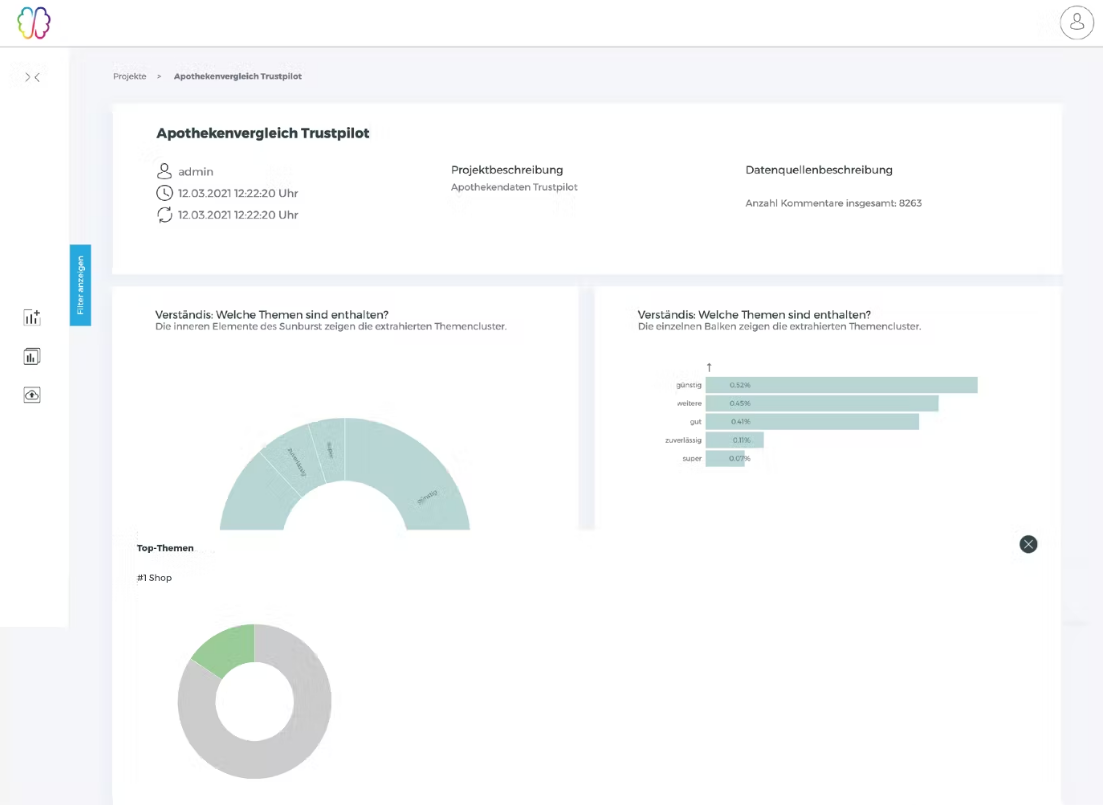 Cauliflower can process feedback and comments for any type of service or product. Cauliflower uses Artificial Intelligence (AI) to identify the most important topics, evaluate them, and establish relationships. Machine learning models in-house developed for extracting content and evaluating sentiment. Intuitive dashboards that offer filter options and drill-downs. You can use included variables to indicate language, weight, ID and time. In the dropdown, you can define your own filter variables. Cauliflower can translate the results into a common language if necessary. Instead of reading customer feedback sporadically and quoting individual opinions, define a company-wide language.