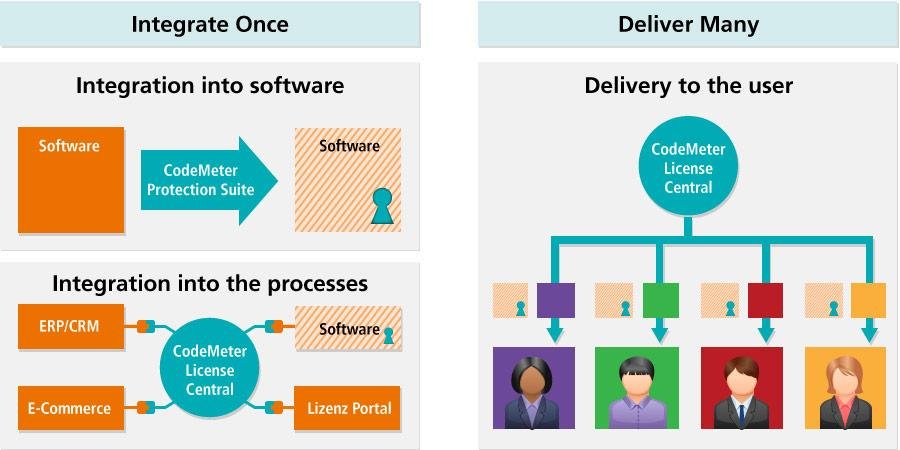 CodeMeter is the universal technology that Wibu-Systems uses to publish software and make intelligent devices. License your software as quickly and safely as possible. This includes key aspects such as the creation of flexible licensing models, their integration with your existing backoffice systems, and the management and monitoring of their entire lifecycle. CodeMeter is only one thing that you need to pay attention to: its integration into your software and business workflow is only necessary at this point. Protection Suite is the tool that automatically encrypts all your libraries and applications. CodeMeter also offers an API that allows you to integrate your software with CodeMeter.