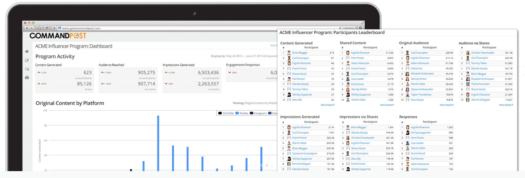 CommandPost, a proprietary tool developed by CMP.LY, specializes in monitoring, measuring, and providing insights for managed social communications. This innovative platform offers immediate, actionable data regarding the individuals (who), the content (what), and the platforms (where) that contribute to your brand's social impact. By integrating your brand’s various channels with CommandPost, you acquire essential social marketing intelligence that allows you to identify your target audience, analyze effective content and strategies, and showcase your social return on investment. The solution is designed to be scalable and measurable, providing transparency regardless of whether you have a workforce of 100 employees or a network of over 1,000 influencers advocating for your brand. Moreover, CommandPost's multi-platform disclosure solutions ensure that your brand and its representatives can effectively communicate necessary legal information in a structured and clear manner, guaranteeing compliance with relevant regulations and adherence to best practices. Ultimately, CommandPost empowers brands to optimize their social marketing efforts and enhance their overall effectiveness in reaching their audience.