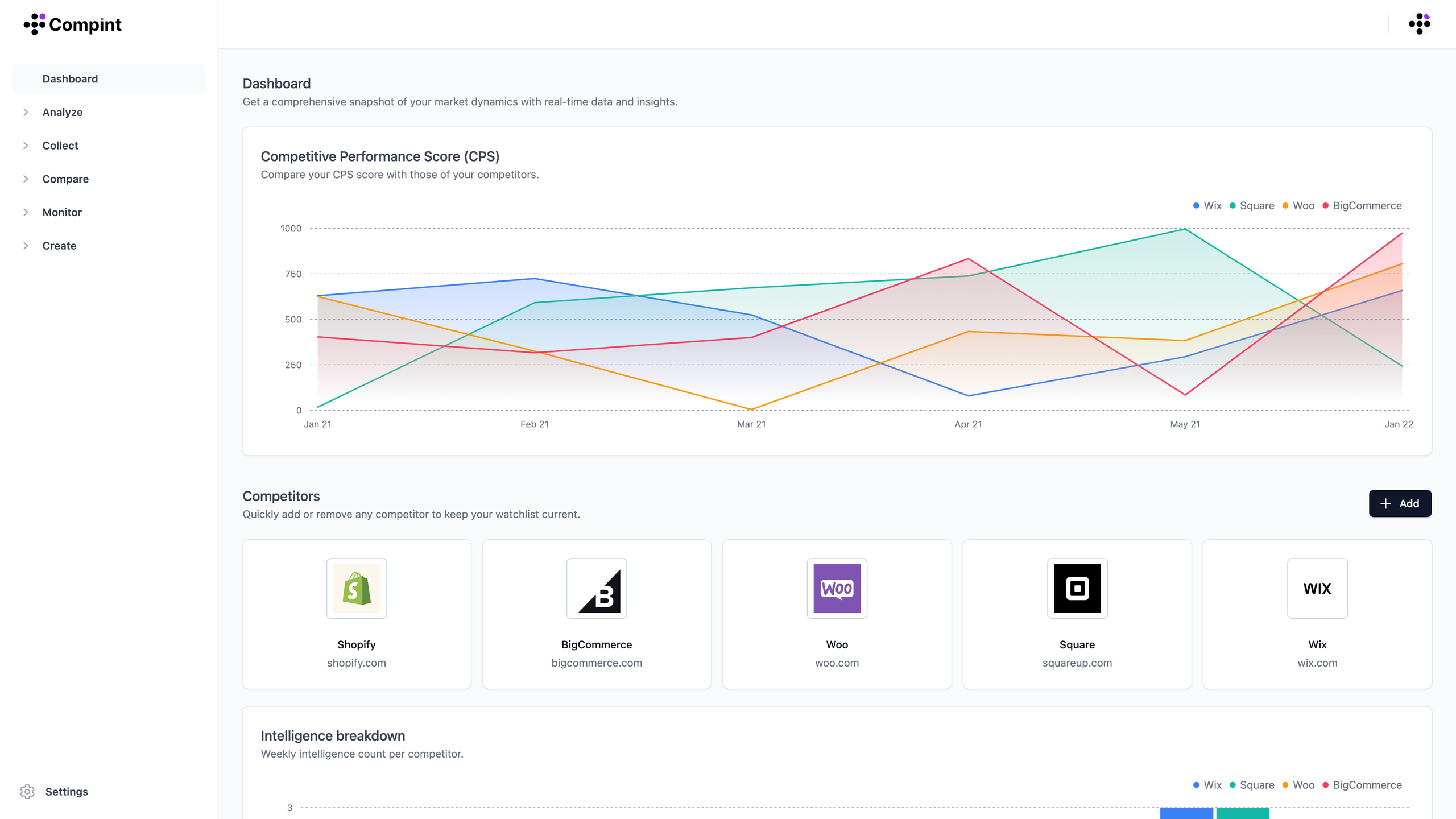 Compint lets you see what your competitors do and create competitive advantage with actionable competitive intelligence.