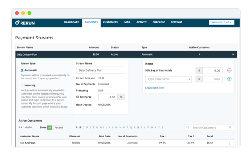 Rerun is designed for any business, organization, or association seeking to streamline their recurring billing processes for subscriptions or memberships while allowing for seamless recurring payments through credit cards and ACH. It empowers you with complete authority over how you manage payment collections from your customers, clients, donors, or parents. You have the flexibility to set up your payment structures according to your specific needs. You can determine the timing and method of your payments, tailoring them to suit your offerings. Customize your payment streams to align with the subscription plans you provide, selecting from options like automated billing or invoicing, as well as specifying the start date, frequency, total number of payments, payment amounts, and much more. Once your customers are added to these streams, Rerun takes care of the rest effortlessly. If you're concerned about absorbing credit card fees, you have the option to implement a surcharge, where permitted by law, allowing you to transfer those costs to your clients. When configuring a payment stream, you can choose to include a surcharge percentage, which will be clearly indicated as a separate line item in the transaction. This feature not only simplifies the billing process but also provides you with the flexibility to manage your finances more effectively.