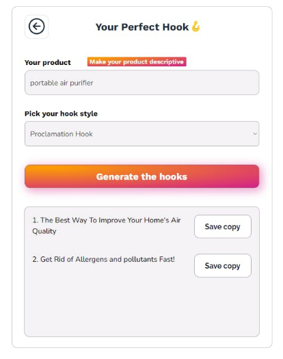 Capturing the interest of customers who are often oblivious to your offerings, and persuading them to make a purchase, can be particularly challenging. However, with Copywise at your disposal, you have the tools to craft compelling hooks in your copy that effectively engage and convert. For instance, a proclamation hook can swiftly seize attention by presenting a daring claim, while a story lead captivates readers by immersing them in a narrative's unfolding events, making them eager for more. Whether your audience recognizes their needs yet doesn't realize your product can address them, or they know they have a problem yet are unaware of available solutions, Copywise will design the optimal hook to ensure your message resonates and drives conversions. Ultimately, the right approach can turn indifferent prospects into enthusiastic customers.