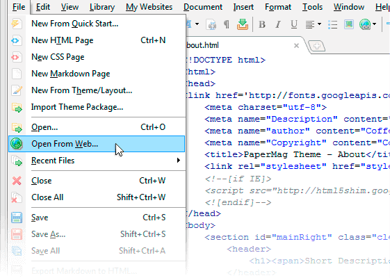 If you're looking for an efficient way to enhance your web development experience, then the HTML Editor is about to become your go-to tool. You will feel a sense of empowerment with its convenient tag references, user-friendly features such as code completion, and website elements that refresh in real-time across all pages, complemented by live previews and a multitude of other fantastic tools and functionalities. We introduced end tag highlighting to alleviate the frustration of searching for that elusive closing div tag </div>, and this enhancement applies to other tags as well, so have fun with it! Additionally, we've crafted numerous free, fully responsive templates that you can easily access. The new Template Installer allows you to import these designs into the HTML Editor with just two clicks, making it incredibly simple. If you're eager to learn about CSS Grid, just download a template and experiment with the code to your heart's content. This is how CoffeeCup transforms web development into an enjoyable activity! The revamped welcome screen will kickstart your web development journey effectively. Need to whip up a quick static page? Just click on New HTML Page. Whether you're starting with a stylish responsive template, embarking on a sophisticated web project, or simply experimenting with some PHP, everything you need for enjoyable web development is right at your fingertips from this fresh start screen, ensuring that every session is engaging and productive.