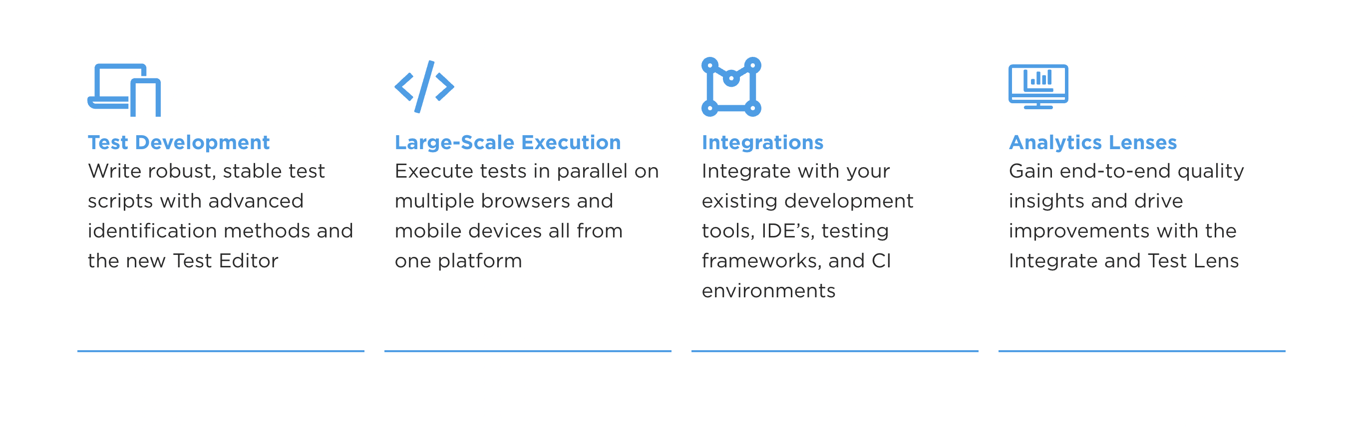 Explore the innovative features of your mobile app by engaging with genuine mobile devices in real-time through your web browser. You can develop and run hundreds of both manual and automated tests simultaneously across more than 1,000 authentic iOS and Android devices hosted in the cloud. Craft Appium tests effortlessly right from your integrated development environment and take advantage of live interactions and debugging. Gain insights through visual test reports and sophisticated analytics. Streamline your cross-browser testing by executing Selenium tests on over 1,000 different browser types, versions, and operating systems. Engage actively with your application as you debug and conduct visual assessments to confirm UI adaptability across various resolutions. With Appium Studio, you can intuitively create new tests or utilize existing projects. Testing on iOS devices via a Windows setup is straightforward, providing advanced testing options. Digital.ai Continuous Testing empowers organizations to perform scalable tests, enhance test coverage, and leverage data-driven insights to deliver superior applications. This comprehensive approach ensures that applications are not only functional but also user-friendly across diverse platforms.