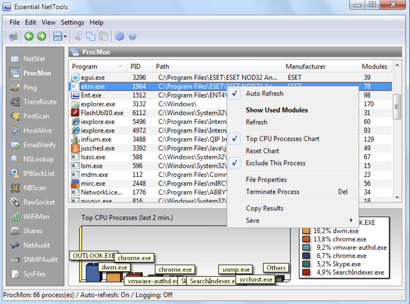 Essential NetTools comprises a collection of tools designed for network scanning, security management, and administrative tasks, proving invaluable for diagnosing network issues and overseeing your computer's network activities. It serves as a multifunctional toolkit for anyone seeking robust network utilities for daily tasks. The software provides a comprehensive list of both inbound and outbound network connections, detailing open TCP and UDP ports, IP addresses, and the current states of connections. Unlike many other NetStat applications, this tool uniquely identifies which applications are associated with open ports. Additionally, it offers customizable alerts for both incoming and outgoing connections, enhancing user awareness. An advanced TCP port scanner is included, enabling users to examine their network for active ports, and it supports both conventional full connect and stealth half-open scanning methods, making it versatile for various user needs. This combination of features makes Essential NetTools an essential resource for network administrators and security professionals alike.