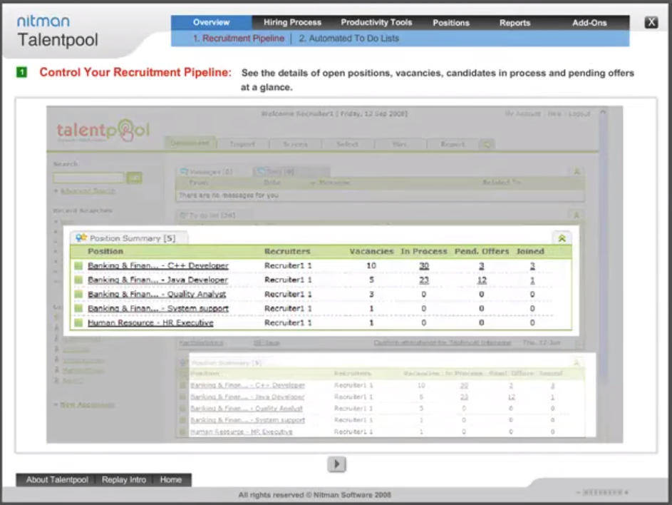 Talentpool is an application available on web, mobile, and desktop platforms that aims to solve various recruitment issues. Its efficient alert and notification system significantly cuts down the time required for hiring and streamlining the interview process. Additionally, the platform enables companies to create and oversee job offers in a matter of minutes, informs candidates about new job vacancies, and ensures that recruitment is guided by specific criteria rather than personal biases. By doing so, Talentpool not only enhances the efficiency of the hiring process but also promotes a more objective approach to recruitment.