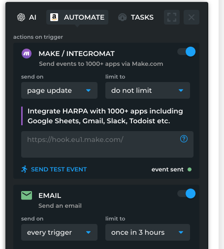 Integrate ChatGPT with Google Search to streamline web monitoring tasks and produce various forms of text using AI, ranging from email responses to tweets and SEO-focused articles. Display ChatGPT's replies alongside Google Search results while also extracting and summarizing web pages, allowing users to engage in conversations with AI. Keep track of product availability and price changes on platforms like Amazon, AliExpress, Walmart, and eBay, ensuring you never miss a deal. Utilize over 100 page-aware commands tailored for diverse applications in marketing, SEO, copywriting, HR, and engineering. Additionally, monitor competitors' websites for updates and receive alerts whenever they make changes. Create any text content with AI, whether it's social media replies, emails, or SEO-optimized writing. Enhance your website monitoring efforts and construct IFTTT workflows using Make.com or personalized webhooks. Strategically segment your audience, conduct thorough research on SEO keywords, and develop well-structured marketing plans, including generating blog outlines and full articles. In essence, you can produce a wide array of text content, from social media posts to YouTube scripts and detailed Amazon product descriptions, all while efficiently managing and automating your online presence.