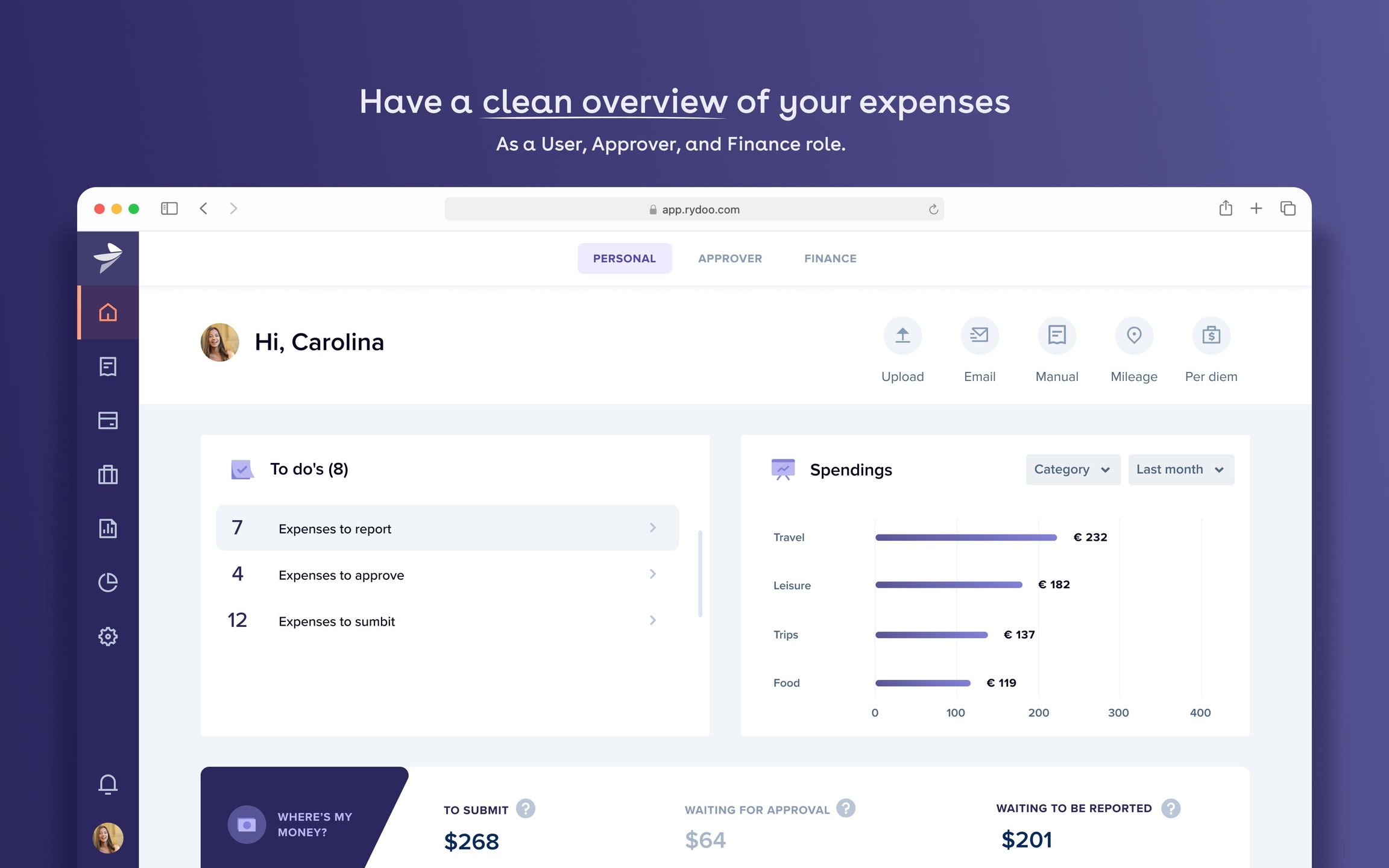 Rydoo offers a mobile & web app that enables employees to create, submit and approve expenses in real-time while providing finance teams with a flexible solution to better control spending and integrate with their HR, Finance, and ERP tools.