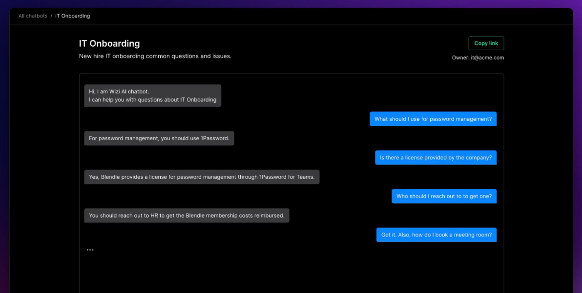 Gain immediate access to essential company information, enabling your team to thrive. IT frequently asked questions are available for new hire onboarding and training purposes. Chatbots designed for employees can assist with policies regarding PTO, sick leave, and remote work, among other inquiries. Additionally, these chatbots provide answers to questions about payroll and 401k plans. There’s even a specialized chatbot tailored for long-term projects that involve collaboration between multiple teams. Ultimately, all company knowledge is readily accessible, serving as a great source of inspiration. This setup is especially beneficial for distributed teams comprising over 100 employees. Our integration with Notion allows for the direct import of Notion pages into Wizi AI, enhancing usability. We also support data sources in Markdown (.md) and text file (.txt) formats for added flexibility. Importantly, your colleagues won't require a subscription to utilize the chatbot, as it is readily available to all employees with a company email domain by default. This accessibility ensures that everyone can benefit from the wealth of information at their fingertips.