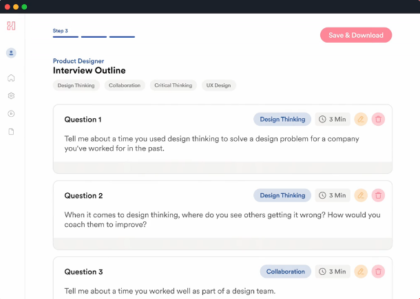 Interview Builder allows you to create simple interview guides. These guides can include business, role, skill, and competency-focused questions from our database of competency questions. This will ensure that your hiring team is evaluating the most important things.