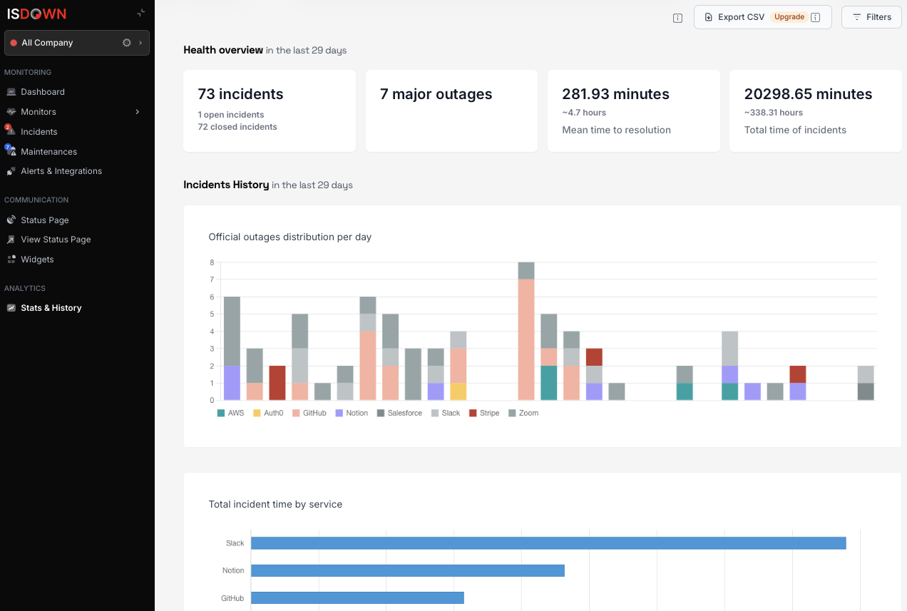 IsDown serves as a centralized platform for monitoring vendor statuses and aggregating status pages, bringing together the status of all essential business dependencies into one easy-to-use dashboard. With real-time monitoring of over 6,000 cloud and SaaS services, it delivers tailored outage alerts to a variety of communication tools, including Slack, Microsoft Teams, PagerDuty, Incident.io, Rootly, Datadog, Email, Discord, and WebHooks. Additionally, users benefit from access to historical uptime metrics and incident reports, along with options for customizable status pages that can be either public or private. The platform also extends its monitoring capabilities to encompass third-party vendors, as well as the APIs, endpoints, and SSL certificates used by your own organization, ensuring a comprehensive overview of operational health. This multifaceted approach helps businesses stay informed and prepared in the face of service disruptions.