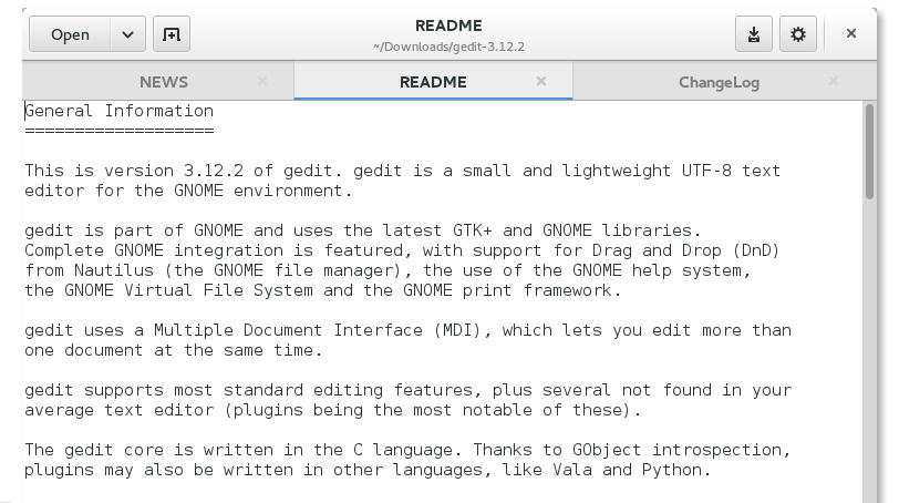 gedit serves as the text editor for the GNOME desktop environment, prioritizing user-friendliness through its default simple interface. Users can access more sophisticated functionalities by activating various plugins, thanks to a versatile plugin architecture that allows for the dynamic incorporation of new advanced features. This adaptability makes gedit a powerful tool for both casual users and those requiring more complex capabilities.