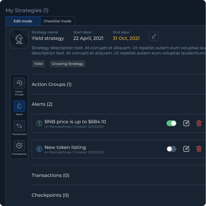 Tailored for advanced users seeking detailed control over their decentralized finance (DeFi) assets, this platform enables the creation of personalized DeFi strategies through the cutting-edge Strategy Manager. Access a wealth of quotes and research across more than 7,000 tokens, over 400 exchanges, and a diverse range of 50+ news sources. Users can set limitless, customized portfolio alerts delivered via Telegram, email, or SMS. Additionally, leverage algorithmic analysis to uncover new tokens based on your existing holdings. By staking KEY, KEYFI, USDC, and more, as well as supplying liquidity on platforms like Uniswap and PancakeSwap, you can earn KEYFI rewards. Furthermore, holders of KEYFI tokens can participate in governance proposals on the KeyFi platform without incurring gas fees, simply by keeping their tokens in their wallets, promoting a more inclusive decision-making process. This approach not only enhances user engagement but also empowers individuals to have a direct impact on the platform's future direction.