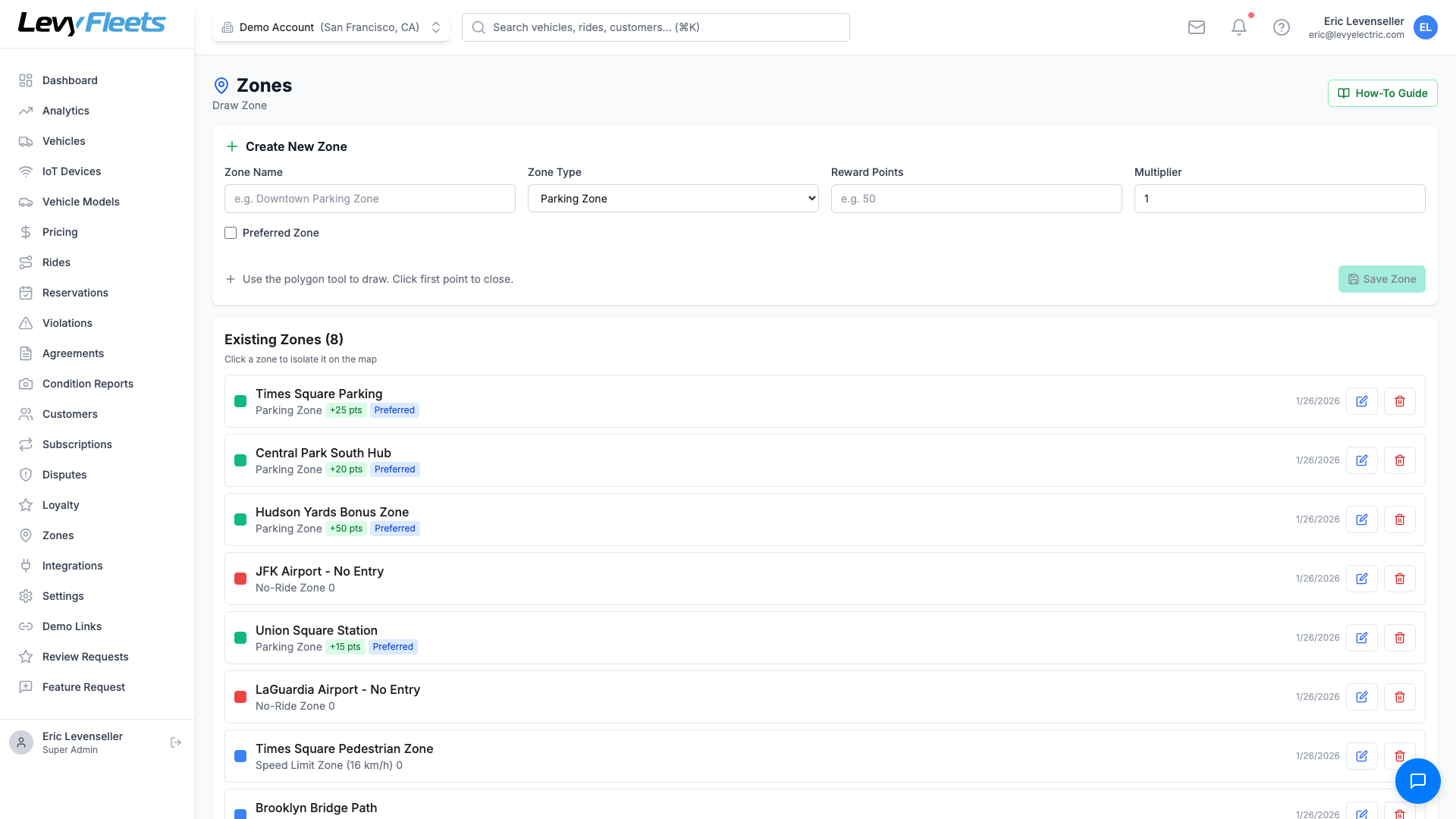 Levy Fleets is a comprehensive fleet management solution designed specifically for operators of shared electric vehicles. This innovative software offers a unified dashboard that includes real-time GPS tracking, management of IoT devices, automated billing for rides, customer relationship management, and detailed operational analytics. Fleet operators are empowered to keep track of vehicle locations, battery statuses, and maintenance needs for all vehicles within their fleet. The platform accommodates various vehicle types, such as e-bikes, e-scooters, and mopeds, and features direct IoT integrations that allow for remote locking, unlocking, and diagnostic checks. Among its key functionalities are geofenced operational areas, dynamic pricing strategies, automated billing processes integrated with Stripe, mobile applications for riders on both iOS and Android devices, and a specialized app for operators to assist field technicians. Levy Fleets effectively caters to micromobility service providers, university campus transportation, resort and hospitality fleets, as well as municipal shared transit initiatives, ensuring a versatile approach to fleet management. As the demand for eco-friendly transport solutions grows, Levy Fleets stands out as a vital tool for modern operators striving to enhance efficiency and user experience.