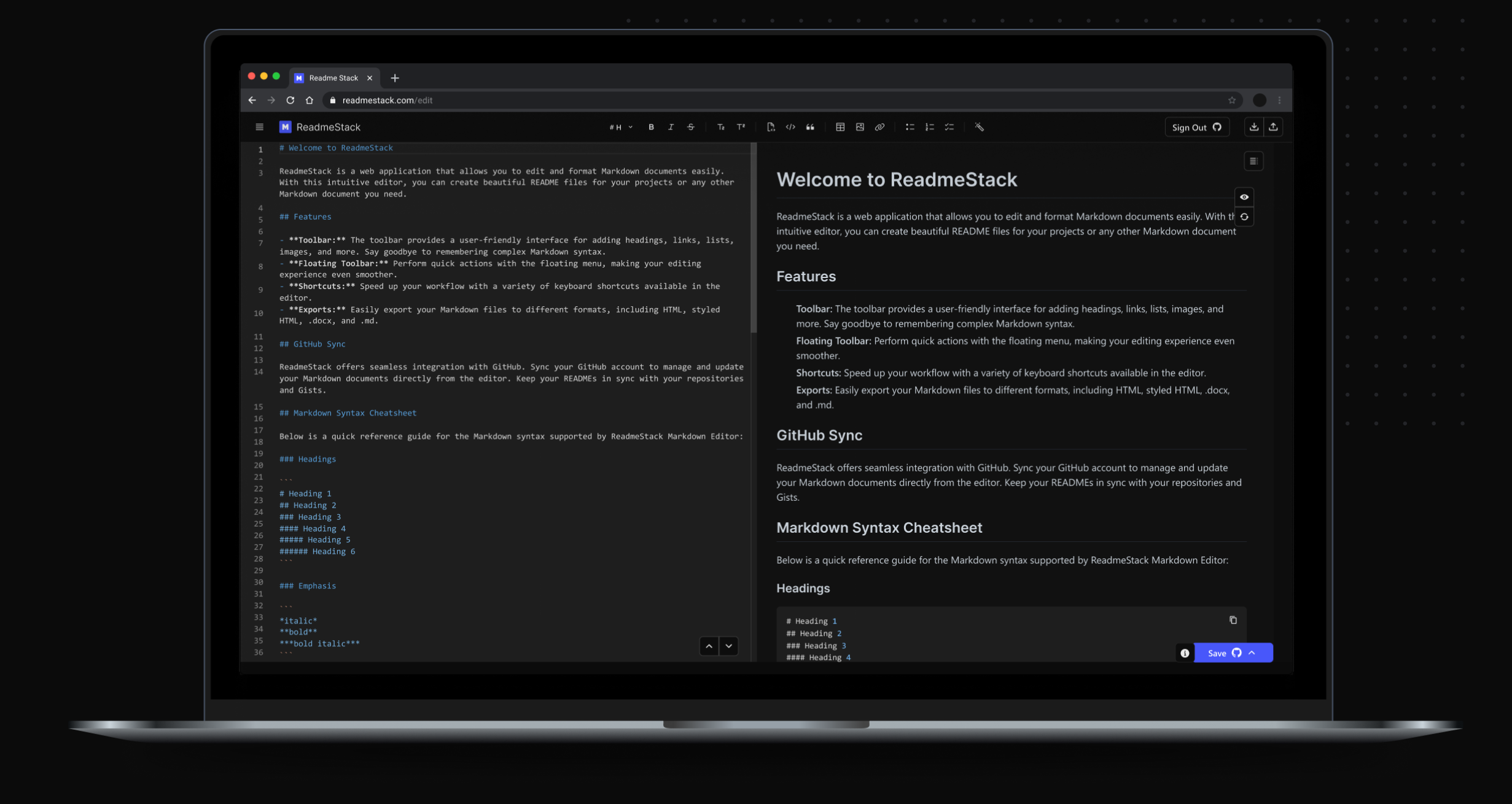 ReadmeStack – Free Markdown web editor synchronized to GitHub.