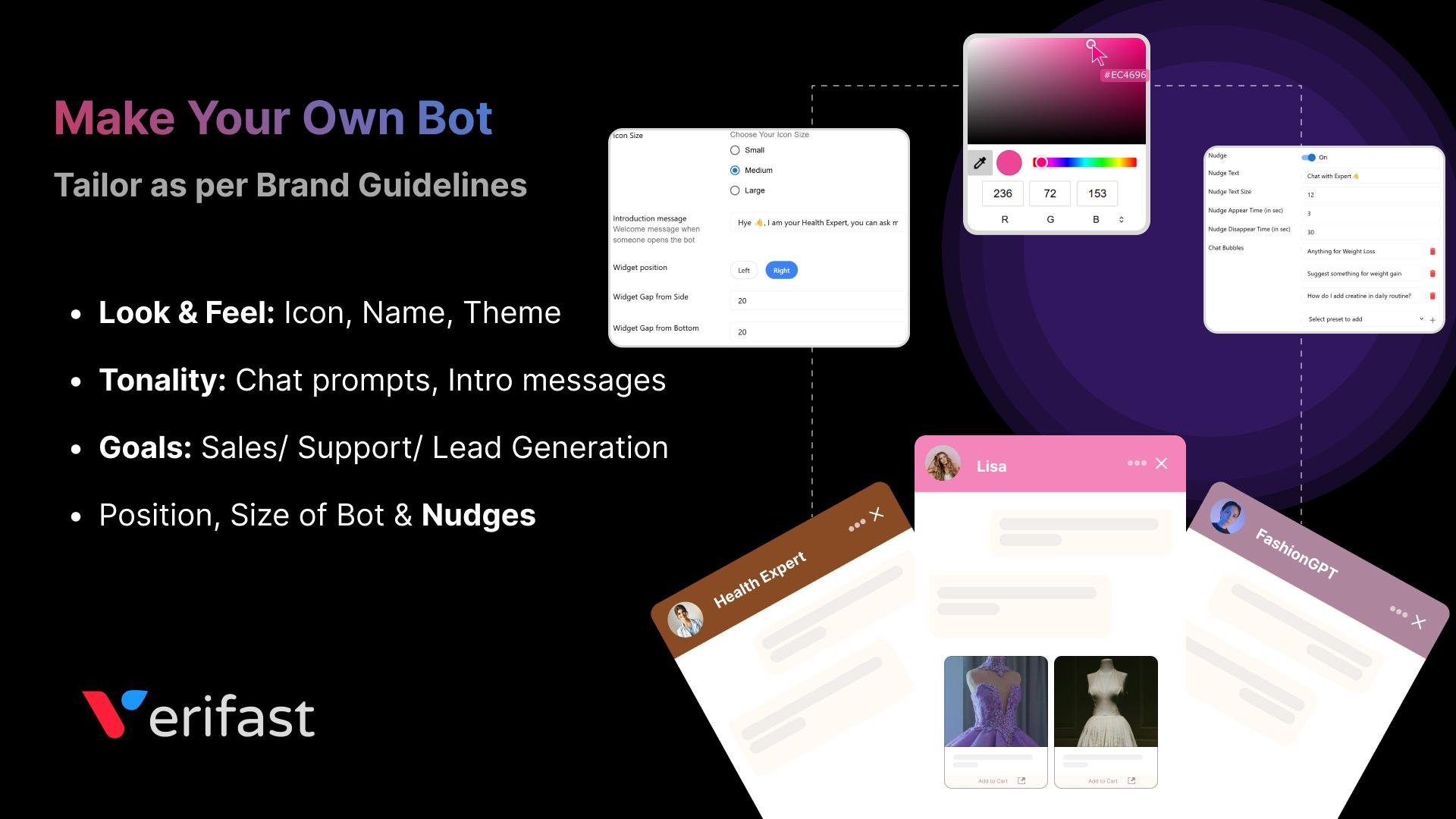 – Customizable communication style, user interface, and bot behaviors tailored to your brand identity
