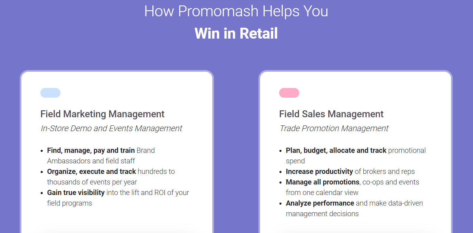 Promomash stands out as the most comprehensive solution for managing retail sales and marketing in the industry. We empower emerging brands to streamline their retail channel marketing strategies, enabling them to boost sales through a robust collection of tools designed for effective planning, execution, and analysis of account management activities. Our approach combines innovative software with dedicated services that enhance your retail marketing efforts significantly. With our user-friendly software, you can effortlessly manage staffing, training, planning, scheduling, executing, reporting, and accounting tasks. Additionally, our exceptional client success team works diligently to transform your field events and activations from disarray to order. Establishing a thriving brand presence in retail stores starts with meticulously organizing all the essential components, including logistics, processes, and the personnel responsible for execution. A lack of control over any of these aspects can jeopardize your success right from the outset. While many claim to value your success, we genuinely embody this commitment. Ensuring our clients achieve their goals is the fundamental principle that drives every aspect of our operations. Ultimately, we believe that success is a journey best traveled together, with our expert guidance and support at every step.