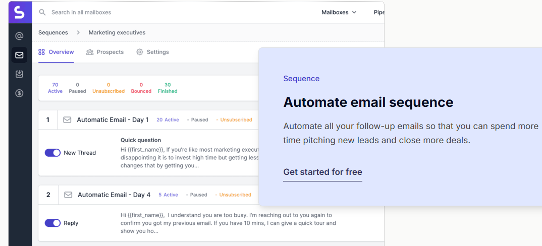 SendFlock is a comprehensive cold email solution crafted to enhance outreach by combining features such as email warm-up, automated follow-ups, a centralized inbox, and CRM capabilities. It allows users to link various email accounts from different providers and manage them seamlessly within one platform. With its automated email sequences, users can concentrate on acquiring new prospects while the system manages follow-up communications on their behalf. The email warm-up feature maximizes deliverability by gradually increasing the volume of sent emails and engaging with a network designed to build sender reputation. The centralized inbox streamlines all email accounts, which boosts response times and overall productivity. Additionally, SendFlock's CRM offers a quick snapshot of the sales pipeline, aiding users in identifying and prioritizing high-value opportunities. Other noteworthy functionalities include A/B testing to refine outreach messages, custom tracking domains to enhance deliverability, and a global block list designed to safeguard sender reputation, along with capabilities for managing team members effectively. Overall, SendFlock provides a robust platform that empowers users to optimize their email outreach strategies efficiently.