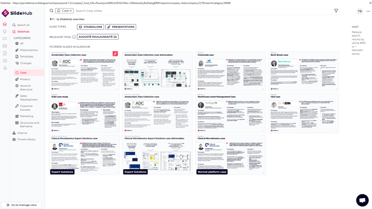 SlideHub is a slide-centric presentation management and automation software that helps organizations streamline presentation building.