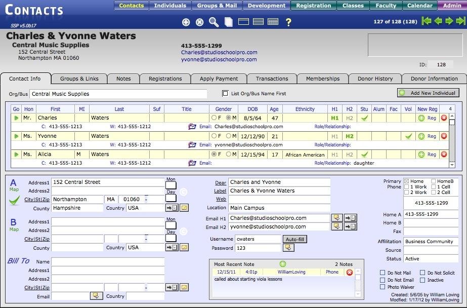 StudioSchool Pro 5 stands out as the leading, all-in-one Management System crafted to fulfill the critical database requirements of community arts institutions and educational non-profits. Featuring a plethora of unique, user-suggested functionalities, the system not only conserves time but also enhances operational efficiency significantly. Users can easily access all family activities and financial records from a centralized dashboard, which includes individual contact details, registrations, payments, donation histories, notes, and memberships. The platform also offers comprehensive demographics for each individual or student, encompassing current age, customizable age groups, grade level, school affiliation, interests, ethnicity, and contact methods such as cell phone, email, and text. Additionally, it accommodates group classes, ensembles, and private lessons seamlessly. Furthermore, the system allows for meticulous tracking of donors, solicitors, contributions, in-kind donations, pledges, payments, and solicitation efforts. This makes it an invaluable tool for organizations aiming to optimize their management and fundraising capabilities.