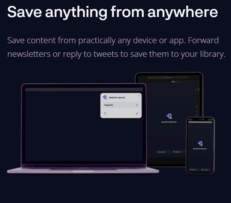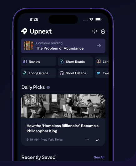 Capture content effortlessly from almost any device or application. You can easily forward newsletters or respond to tweets, allowing you to store them in your personal library. This method effectively helps to minimize clutter within your collection. Simply swipe left or right to navigate through your saved items. Each morning, we showcase content from your library that remains unfinished, ensuring you never miss out on what you intended to explore. You can access your latest saves or pick up where you left off in a previous session. By reading a brief introduction, key points, or a detailed summary, you can save valuable time before diving into longer materials. Our advanced parsing technology processes all types of content, including audio and video, enabling you to concentrate without interruptions from advertisements or poor formatting. Additionally, receive timely updates from your preferred creators and experts whenever they generate or share new content online, keeping you engaged with the latest information. Explore the ease of maintaining an organized library while staying connected to your interests effortlessly.
