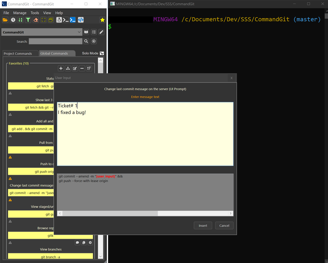 CommandGit's unique features will help software developers at all levels of the software development cycle increase their productivity. You can easily manage your cloud infrastructure and your local Git repository with just a click. There are many options available. The only limit is the number of CLI commands presets that you wish to create. It can be used daily as your Git GUI client, or as a primary utility for system administration.