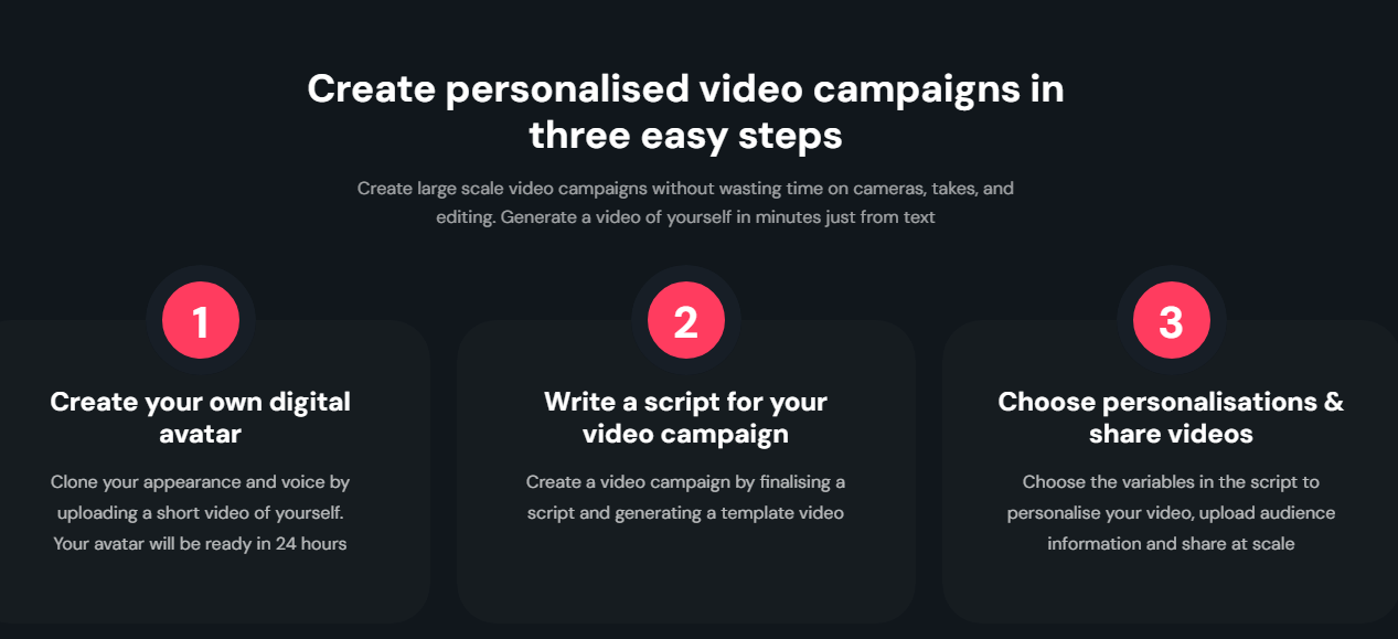 With DeepReel, you can effortlessly replicate your appearance and voice, enabling you to send tailored videos in bulk without the need for additional recording sessions. This innovative tool allows sales teams to boost their efficiency and connect with thousands of customers on an individual basis through videos produced by DeepReel. By delivering personalized videos at scale, you can elevate your marketing efforts and champion your products or services like a true superhero. Enhance the customer experience by equipping your customer success teams with the ability to create unique videos for each client, fostering individualized attention. Establish a genuine rapport with your customers and potential clients through the use of personalized videos that resonate on a deeper level. To get started, simply draft your video script, choose the elements you wish to customize, and generate hundreds of tailored videos. Additionally, you can leverage your own branding assets to enhance the emails and landing pages where customers can view these personalized videos, ensuring a cohesive and engaging experience. In this way, DeepReel not only streamlines communication but also transforms the way businesses interact with their audience.