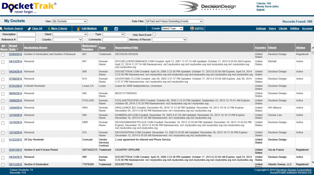 Summary: DocketTrak is great for keeping track of numerous due dates for an array of different tasks. Ability to upload and save different templates for future use, which will auto populate information for you which cuts down on processing time. These include generic letters or forms that you may send to multiple people on a regular basis.
