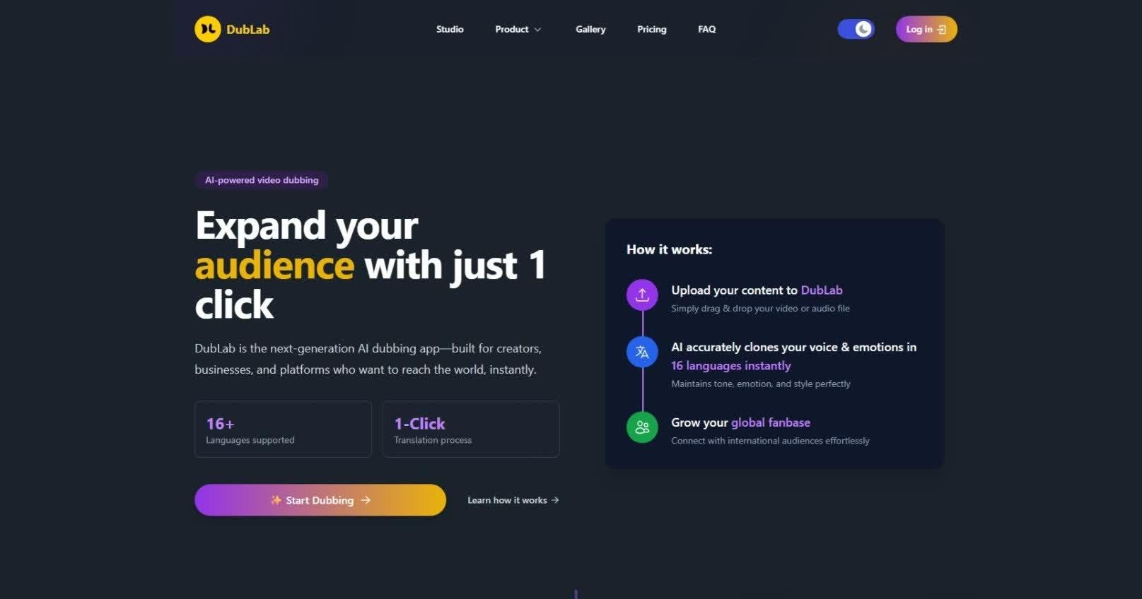 Expand your reach to a worldwide audience effortlessly. Our video translation services are not only fast but also budget-friendly, utilizing state-of-the-art dubbing technology. We leverage the latest advancements to ensure your content stands out in the best possible way. Your videos can be seamlessly dubbed into and from languages such as English, Portuguese, Spanish, French, Italian, German, and Japanese. Expect to receive your dubbed video within just 24 hours, perfectly tailored for your YouTube channel. We proudly offer the most competitive pricing in the industry, guaranteed. Simply provide us with the link to your original video and specify the desired languages for dubbing, and then relax while we handle all the intricate details. This way, you can transform your channel into a multilingual platform without the need to hire voice actors, studios, or translators. Furthermore, Dublai ensures that your channel retains its unique identity and character by using the original voice from your video as the basis for dubbing in other languages, making your content feel authentic and engaging. Embrace the opportunity to connect with a diverse audience and elevate your content to new heights.
