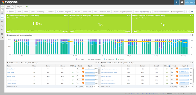 Service Watch provides Digital Experience Monitoring (DEM), for apps, services, as well as the networks they depend on. IT can have complete visibility and increase employee productivity by combining passive and active monitoring in one holistic solution. You can troubleshoot network performance and detect outages.
