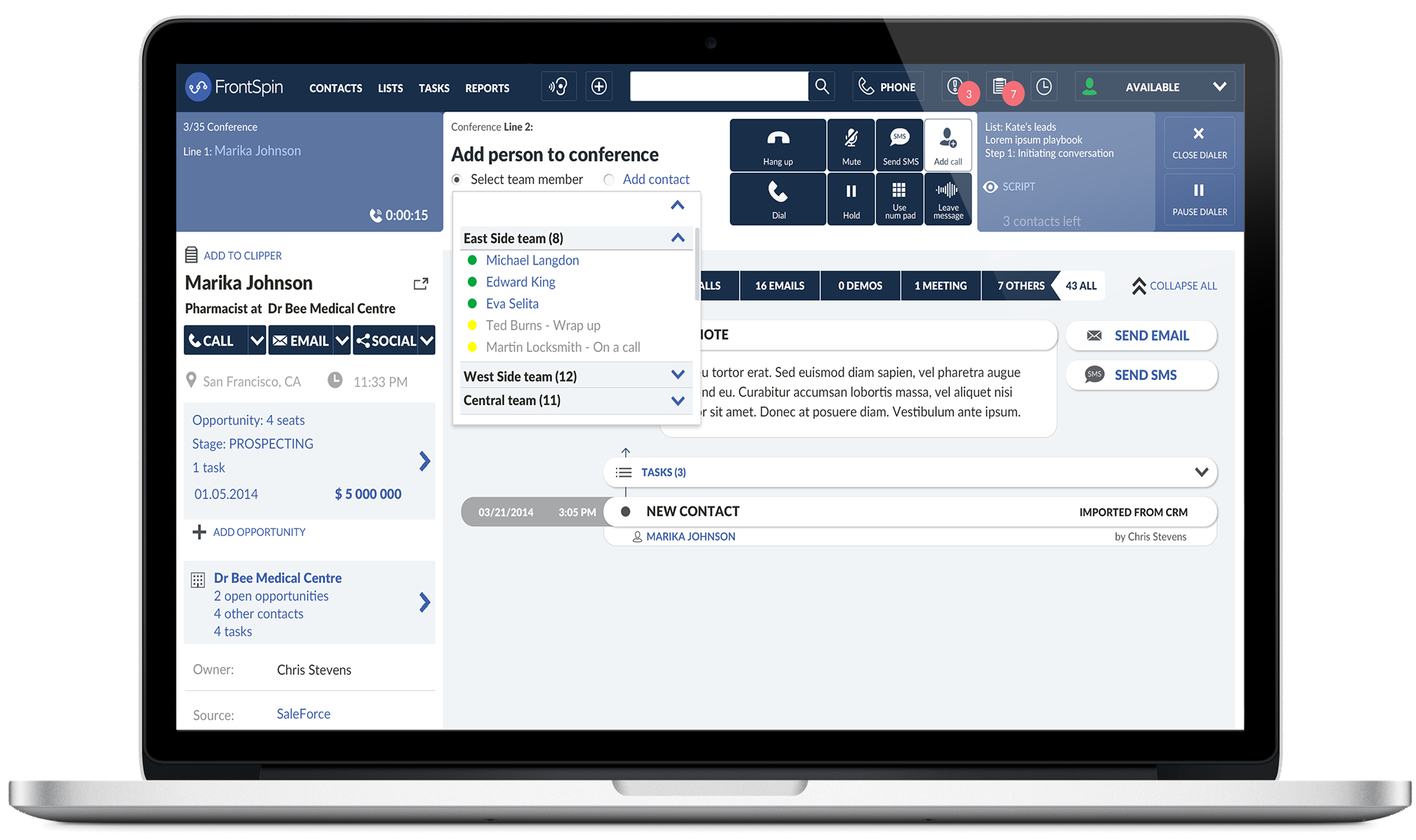 FrontSpin is an innovative cloud-based sales communication tool aimed at boosting the productivity of inside sales teams by allowing them to connect with up to three times as many prospects and successfully close a greater number of deals. Featuring a sophisticated power dialer, the platform includes prioritized call lists and pre-recorded voicemails, which help sales agents to optimize their outreach strategies. Additionally, FrontSpin provides customizable email templates along with instant notifications for email opens and clicks, as well as tailored cadence playbooks that combine calls, emails, and social media interactions. The platform’s seamless integration with CRM systems facilitates real-time logging and synchronization, minimizing administrative burdens while improving team visibility. With a strong emphasis on both sales velocity and acceleration, FrontSpin empowers sales teams and agencies to meet their quotas more efficiently. Ultimately, its comprehensive features support a more streamlined sales process, making it a valuable asset for any sales organization.