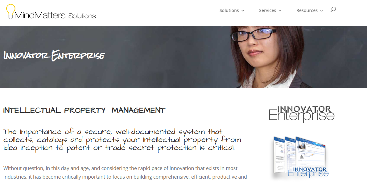 MindMatters Solutions offers the INNOVATOR Enterprise system, a comprehensive IP management software designed to oversee, secure, and preserve your intellectual property from the very beginning. Once you input your invention disclosures, they are protected within our software and only shared with authorized personnel involved in the review and decision-making process for patent applications or trade secrets. The INNOVATOR Enterprise provides robust capabilities to safeguard and manage a wide array of intellectual assets, including inventions, patents, trademarks, trade secrets, licenses, agreements, products, and competitive intelligence. With features like automatic snapshots, an Activity Log, and cutting-edge security measures, your assets receive full protection across various users, teams, departments, business units, and geographical locations. This system ensures that your organization can efficiently track and maintain all aspects of its intellectual property portfolio, allowing for streamlined management and enhanced security.