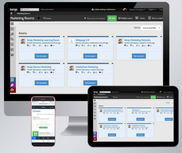 Kenja Rooms allows for secure collaboration with project management, content management, and video conferencing. It can be embedded in existing software systems, deployed on-premise or in the cloud, and can also be used to manage and publish web content. Kenja Rooms allows users to organize and share content, comment on and annotate documents and assign and manage tasks. They can also publish websites and conduct video conferencing.