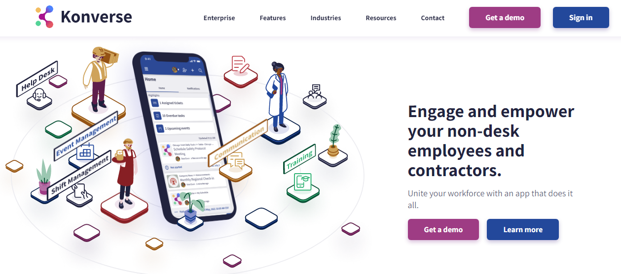 You have all the essential tools for effective communication, training, task management, event organization, customer service, and analytics, among other functions. With Konverse's comprehensive platform, you can seamlessly integrate your current tools while also adding new features effortlessly. This solution empowers employers to connect with the often-overlooked deskless workforce. By ensuring that communication and procedures remain smooth, you can implement new features for deskless employees in a matter of days rather than waiting for months or even years. In today's competitive landscape, exceptional customer service is key to success, making it crucial to align both deskless employees and those working onsite. Konverse provides sophisticated analytics that gives employers insight into their deskless workforce's activities, fostering accountability among workers. Instead of depending on outdated metrics, you can now predict your company's performance in real-time. This platform delivers immediate metrics that can guide your forward-thinking strategies. Are you currently investing in multiple expensive applications that fail to serve your deskless workforce effectively? Konverse could be the game-changing solution you’ve been seeking.