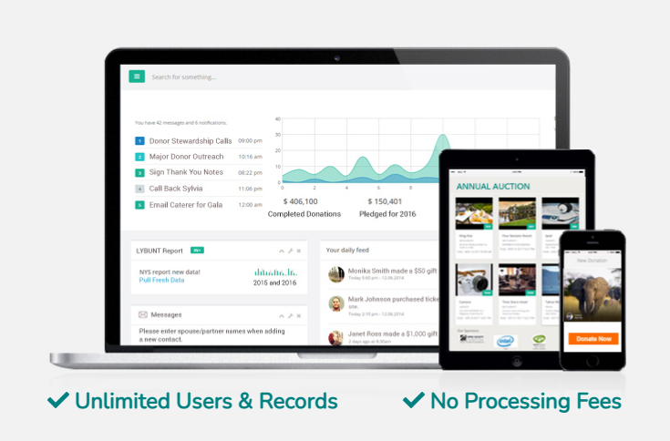 DonorPerfect is the most comprehensive solution in fundraising, with everything nonprofits need to grow. It helps your team manage donations, contacts, receipting, reporting, email, and fundraising initiatives from a single system. With automatic monthly giving, integrated online donation forms, standard and custom reports, Constant Contact email, auction management, and a network of integrated partner solutions, DonorPerfect is ideal for organizations of all sizes.