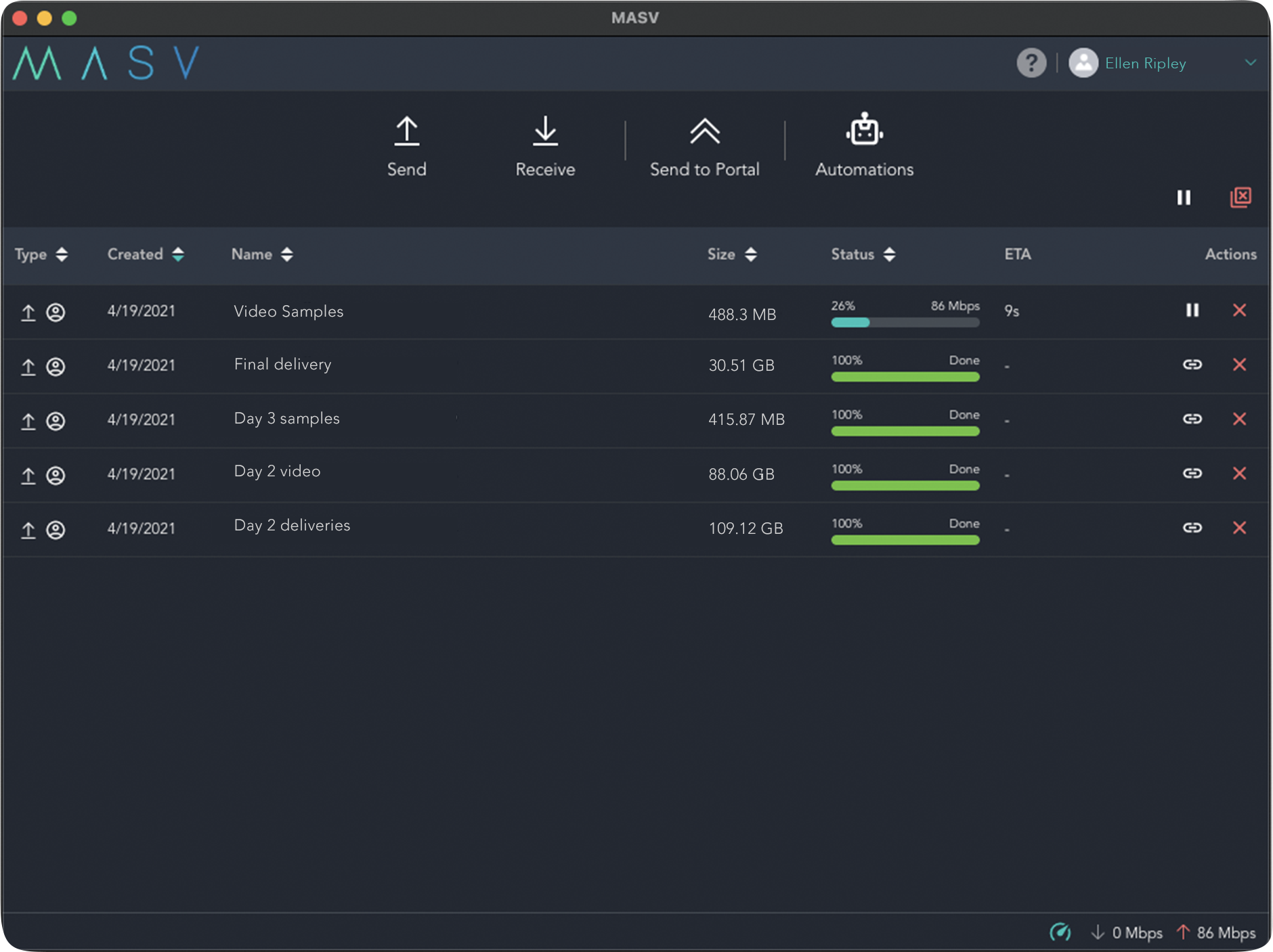 Summary: I was struggling trying to deliver large files to employees and clients. We are a media creation company, so sending multiple TB of data daily is a regular occurrence. Other file transfer services have bandwidth and sharing limitations. MASV provides amazing speeds and support for large filesets. Easy to set up and use and prices are on point. Thanks!