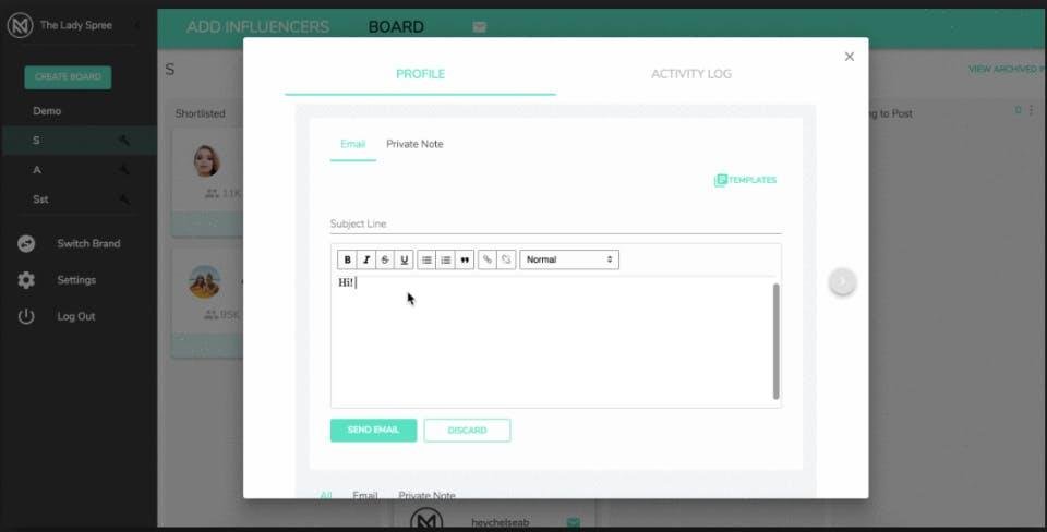 • When you "Accept" we set you up with a "Message" channel with your new Influencer to coordinate your Collab!