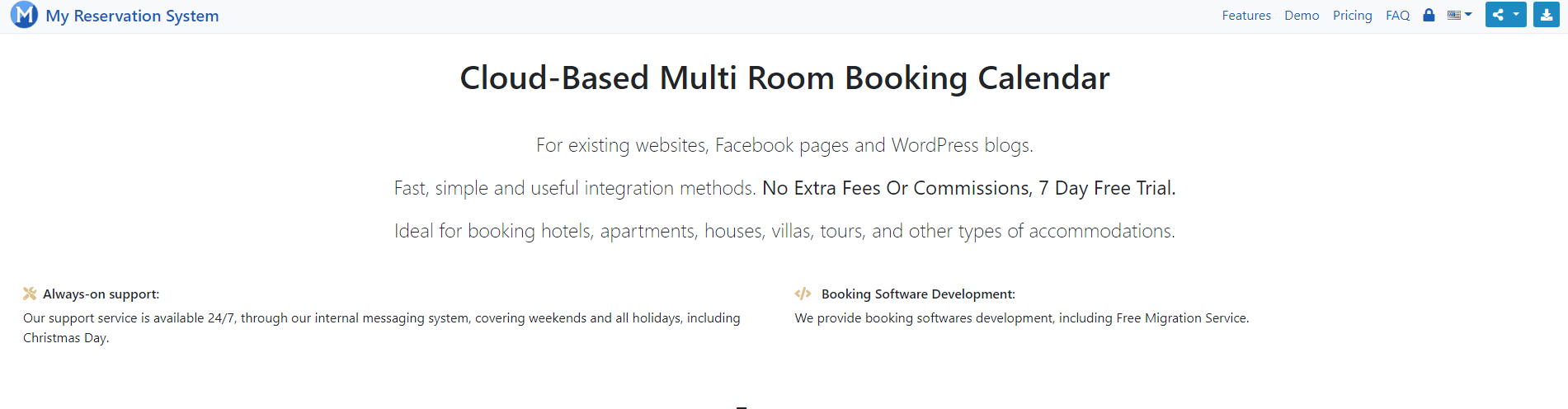 Customers report that Book It Now makes it easier to book and that their occupancy is higher when they switch from other online reservation systems, even top-ranked ones. The system is easy to use and offers a mobile platform that allows guests to book directly with you. Online Booking Engine - Seasonal Rates & Availability – Yield Management – Channel Management - Automated SMSing and many more.