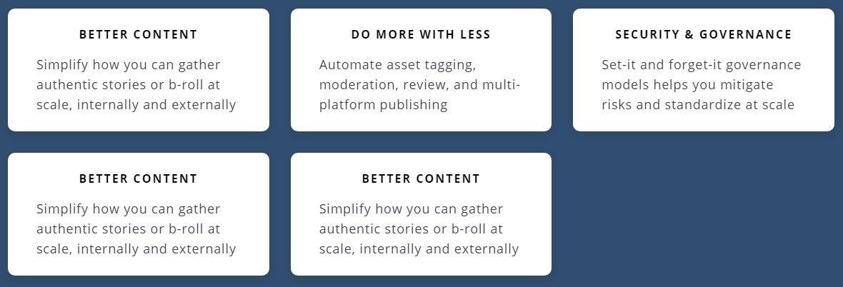 A media platform that is all-in-one and Enterprise-grade to quickly gather, enrich, store and collaborate on media assets for video producers, broadcasters, and publishers. It simplifies how you can gather authentic stories and b-roll at scale both internally and externally. Automate asset tagging and moderation, review, as well as multi-platform publishing. You can standardize at scale and mitigate risks with the Set-it-and-forget-it governance model. Simplify the process of gathering authentic stories and b-roll at large scale, both internally and externally. Simplify the process of gathering authentic stories and b-roll at large scale, both internally and externally. Integrate responsive upload widgets, enforce governance, and increase transparency via email notifications. We have you covered with trimming, cropping, trimming, pillarboxing, side blurring, trimming, cropping, as well as downloading source files. All incoming assets are subject to facial, object, scene and celebrity recognition.