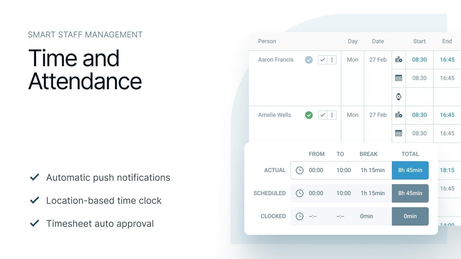 Managers gain centralized scheduling tools that can auto-assign shifts, handle rotations, balance skills across teams, and highlight coverage gaps. Labor allocation down to job, project, or cost center levels makes reporting and charge-backs straightforward. Finance and operations teams get dashboards that track hours, overtime, and costs in real time, with exportable audit-ready reports.